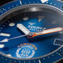 Every detail of the watch has been designed in close collaboration with this elite Italian military unit, whose logo features at six o’clock on the deep blue dial and ceramic bezel. This stunning colourway, emblematic of Squale, also reflects the tones of the Palombari del Comsubin’s uniform, which is designed to blend in with the sea. These colours are also echoed in the additional operational camouflage-coated Comsubin leather strap that is supplied with the watch, which comes on a durable black rubber tropic strap as standard: ready for underwater work. This is truly a diver’s watch created by divers for divers.
