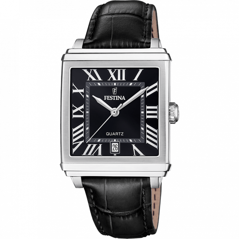 The Festina On the Square Mens watch features a distinctive square dial that balances robust construction with refined sophistication. Designed for the modern professional, this watch combines contemporary details with a classic design, making it ideal for both business settings and formal occasions.Ā