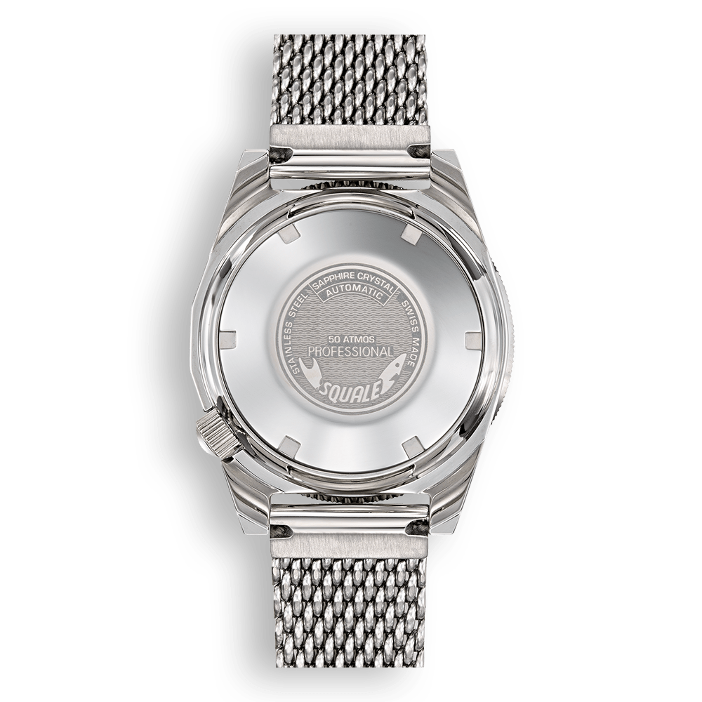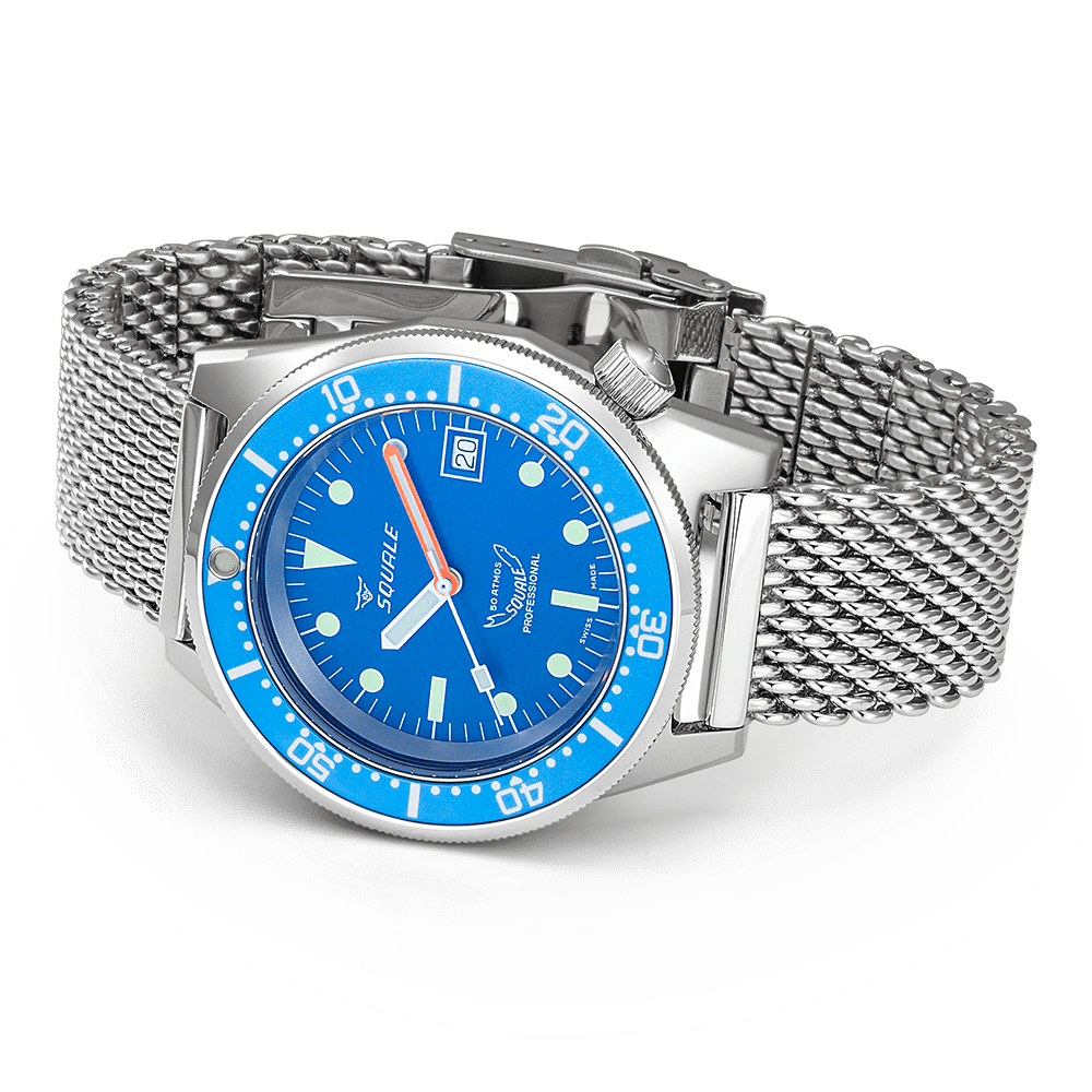 The position of the crown at four o’clock has over the years become one of the trademarks of the Squale brand. Much more than just an aesthetic detail, it was designed in this way to avoid accidental knocks during a dive, which could cause it to become unscrewed, damaging the watch.