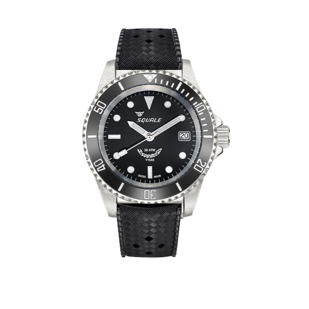 The Squale 1545 Classic is a 200 meter diving watch with a rich black dial with white SuperLuminova treated hands and hour markers.