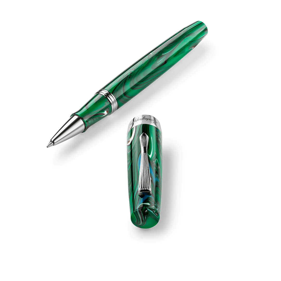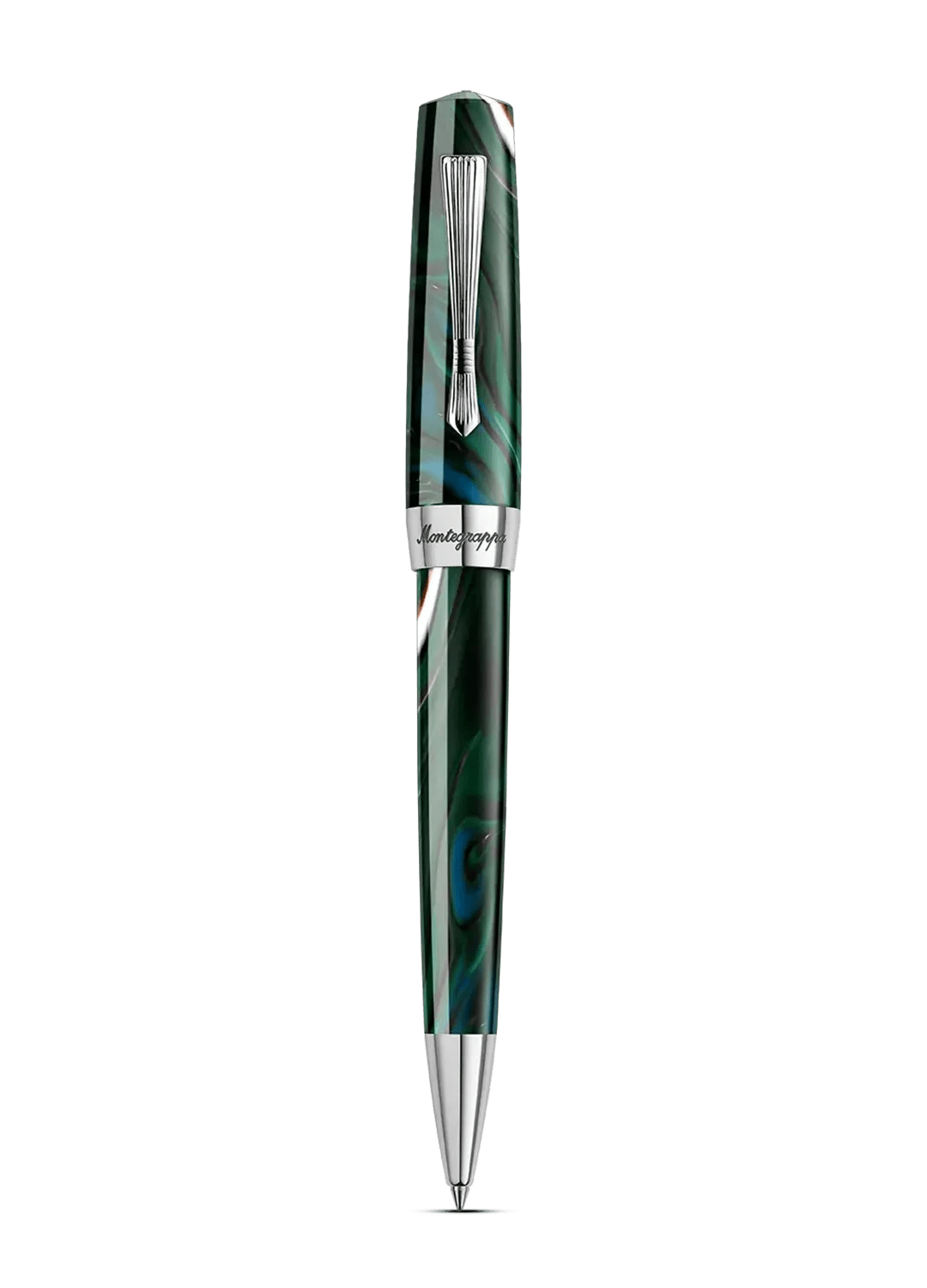 The Montegrappa Elmo pen draws inspiration from a storied lineage of design innovation. This contemporary interpretation honours the brand's heritage through carefully considered details: tapered ends, a distinctive grip profile, and a brass "cumberbund" clip reminiscent of 1920s elegance with subtle art deco undertones. The swirled marbled finish sets each pen apart, with randomly occurring patterns that ensure no two pieces are identical. Crafted in Montegrappa's modern workshop, the Elmo pen represents the same spirit of ingenuity that once defined an era when writing instruments were essential tools of distinction and personal expression.