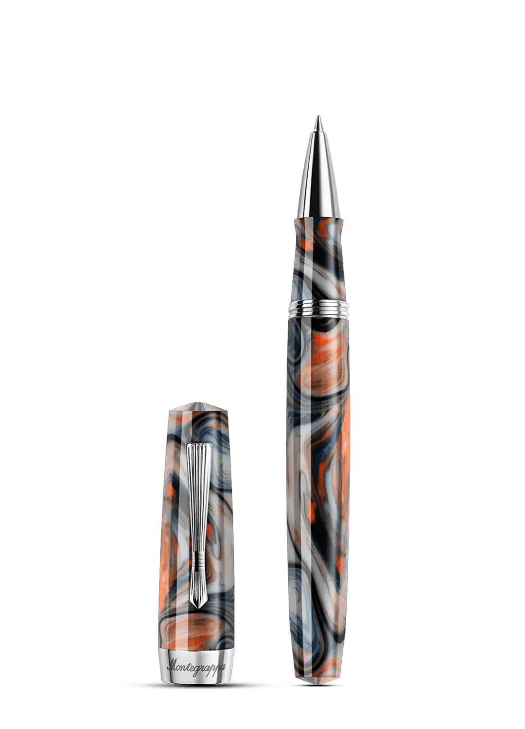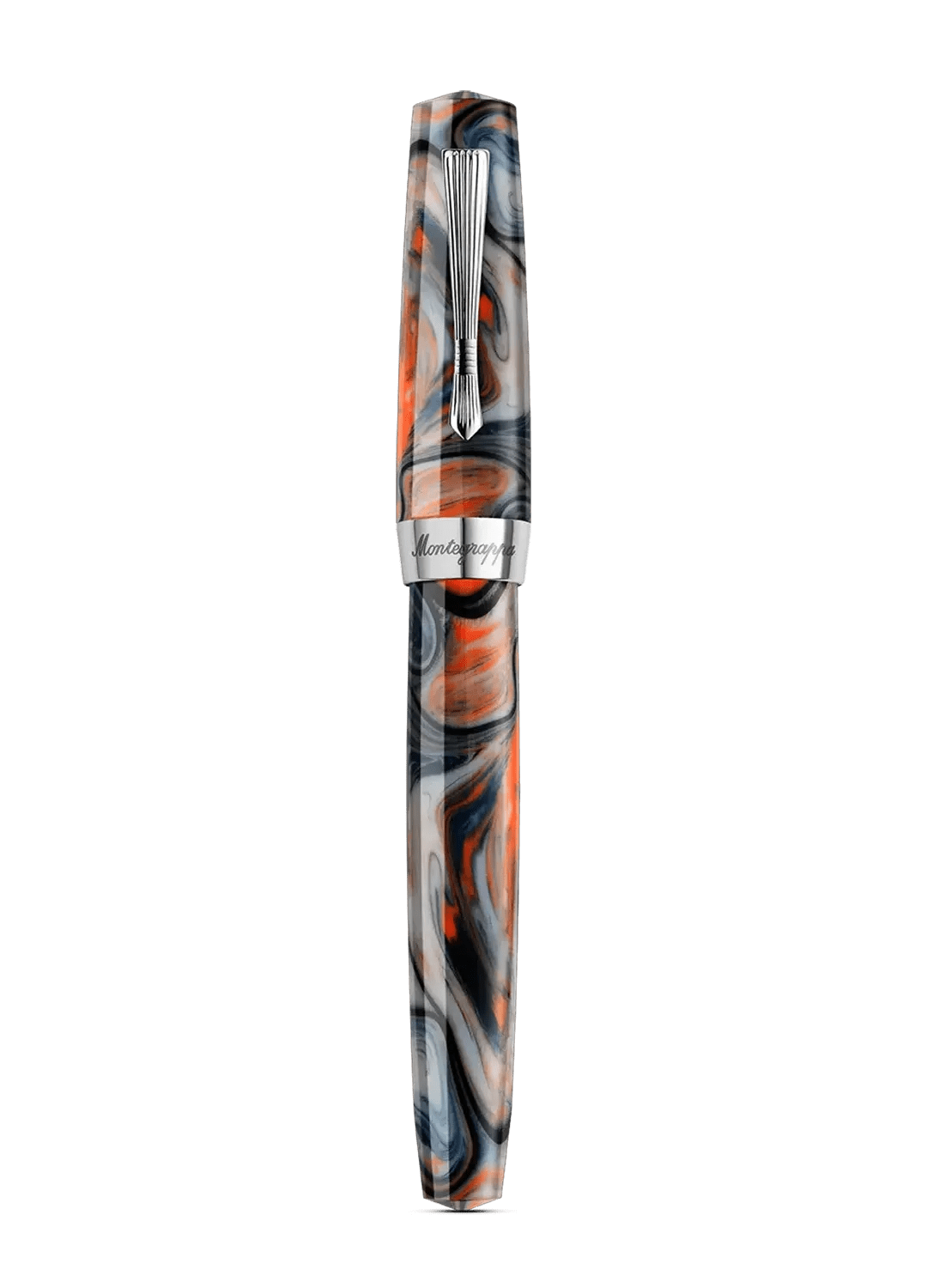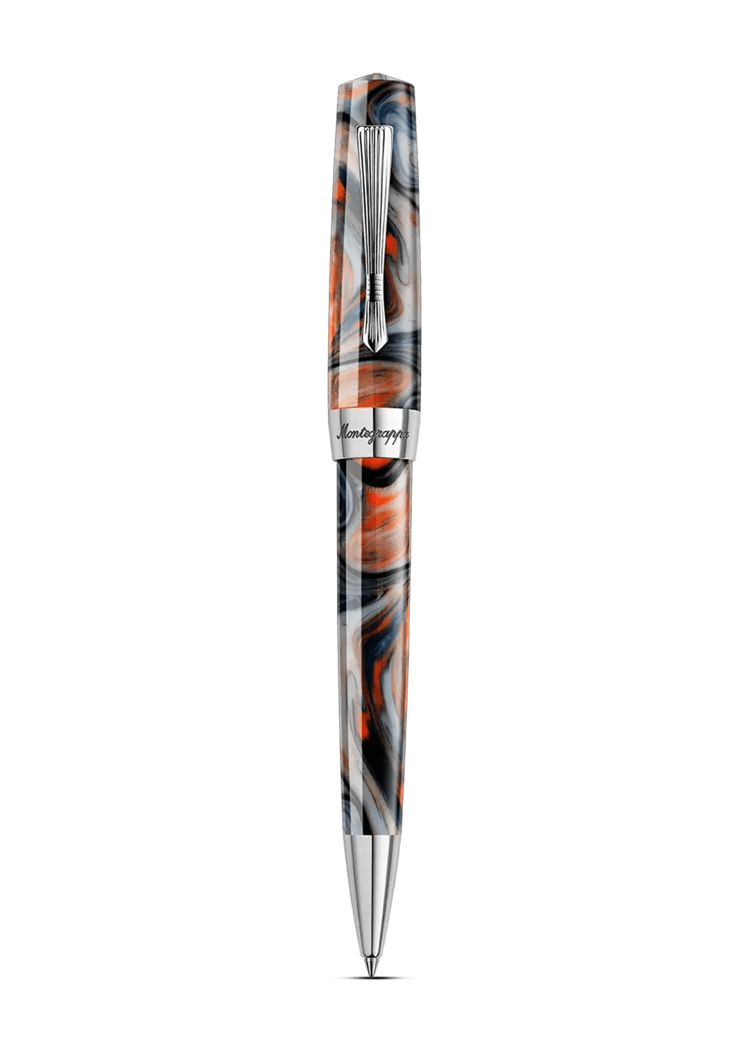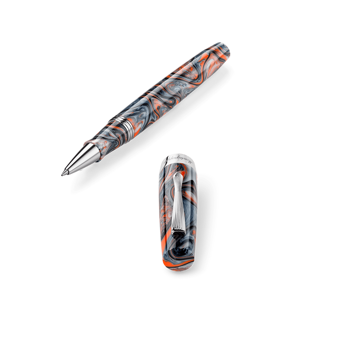 The Montegrappa Elmo pen draws inspiration from a storied lineage of design innovation. This contemporary interpretation honours the brand's heritage through carefully considered details: tapered ends, a distinctive grip profile, and a brass "cumberbund" clip reminiscent of 1920s elegance with subtle art deco undertones. The swirled marbled finish sets each pen apart, with randomly occurring patterns that ensure no two pieces are identical. Crafted in Montegrappa's modern workshop, the Elmo pen represents the same spirit of ingenuity that once defined an era when writing instruments were essential tools of distinction and personal expression.