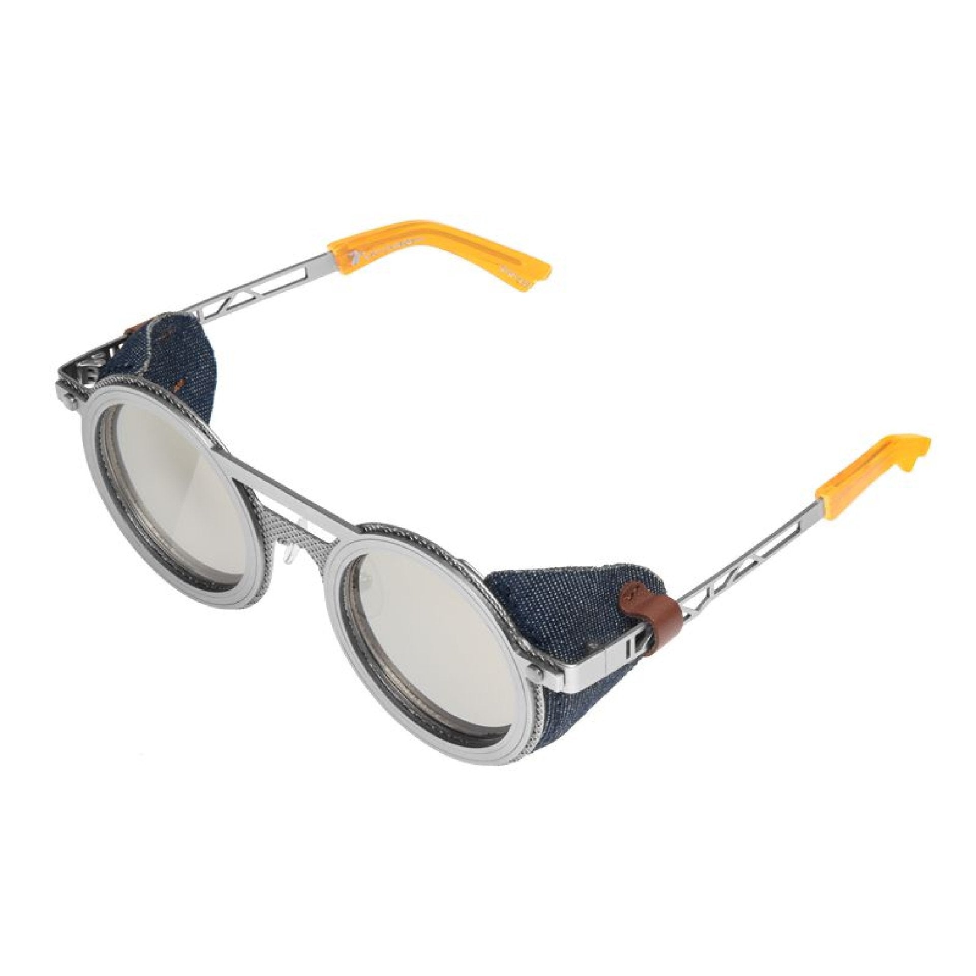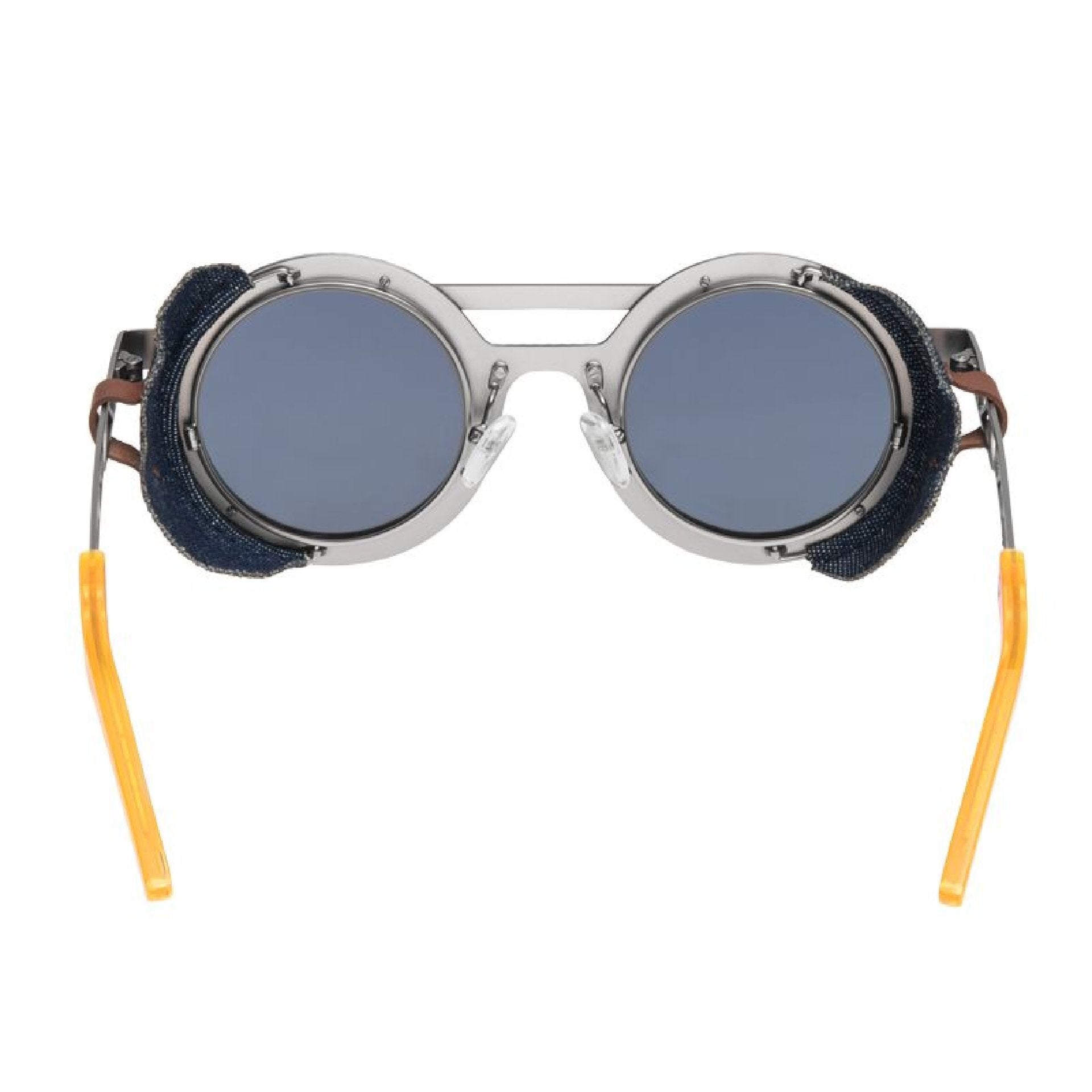 The BOB by SEVENFRIDAY INS1/03 merges industrial aesthetics with contemporary eyewear design. Its stark, geometric silhouette channels raw minimalism while mirrored lenses deliver functional style and UV protection. Denim blinders and striking orange accents provide visual contrast against the precision-engineered steel frame, creating a sophisticated accessory equally suited to urban environments and leisurely settings. An uncompromising choice for those who demand both substance and distinctive design in their eyewear.