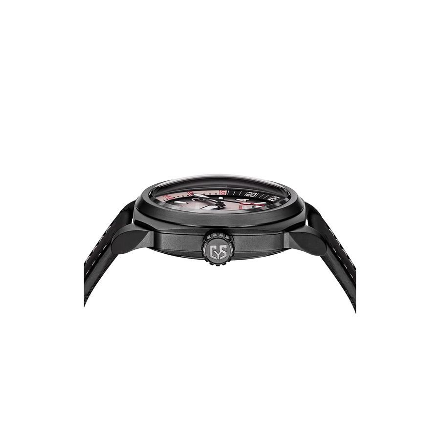 • 2 black DLC stainless steel pin buckles for rubber and leather straps, engraved CyS emblem