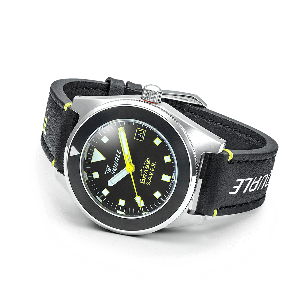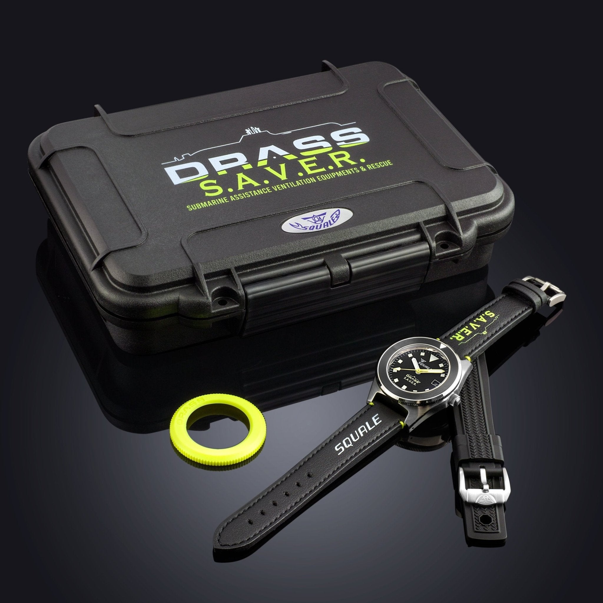 Squale and Drass embody two complementary excellences: on one side, Swiss tradition in professional dive watchmaking, and on the other, Italian leadership in submarine construction and deep-sea technologies. United by a long history and the same pioneering spirit, they present the new Squale DRASS S.A.V.E.R. model, inspired by the innovative SAVER rescue system, designed to ensure safe and effective rescue operations even in the most extreme marine conditions.