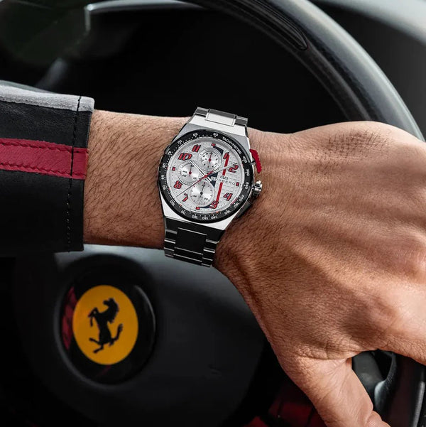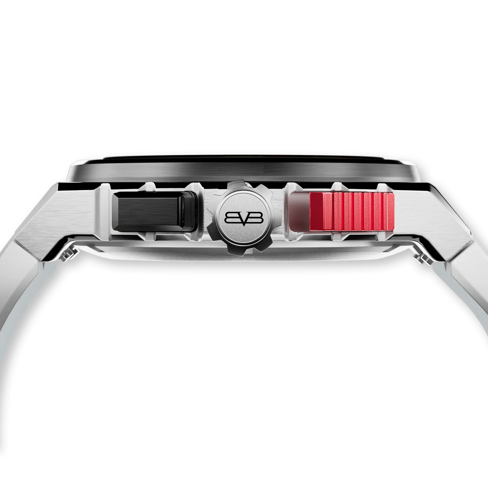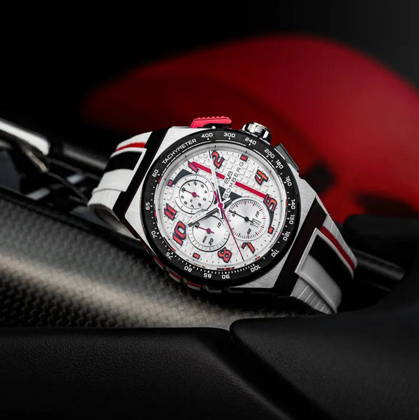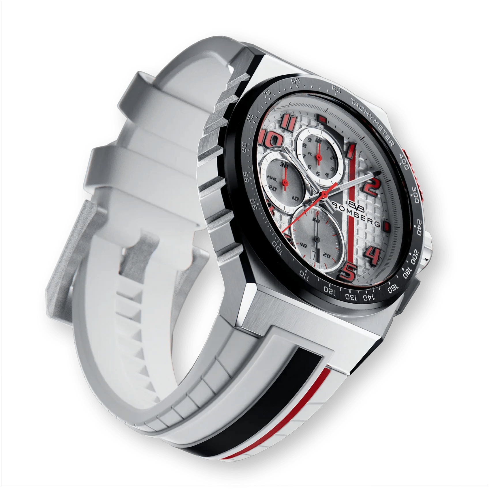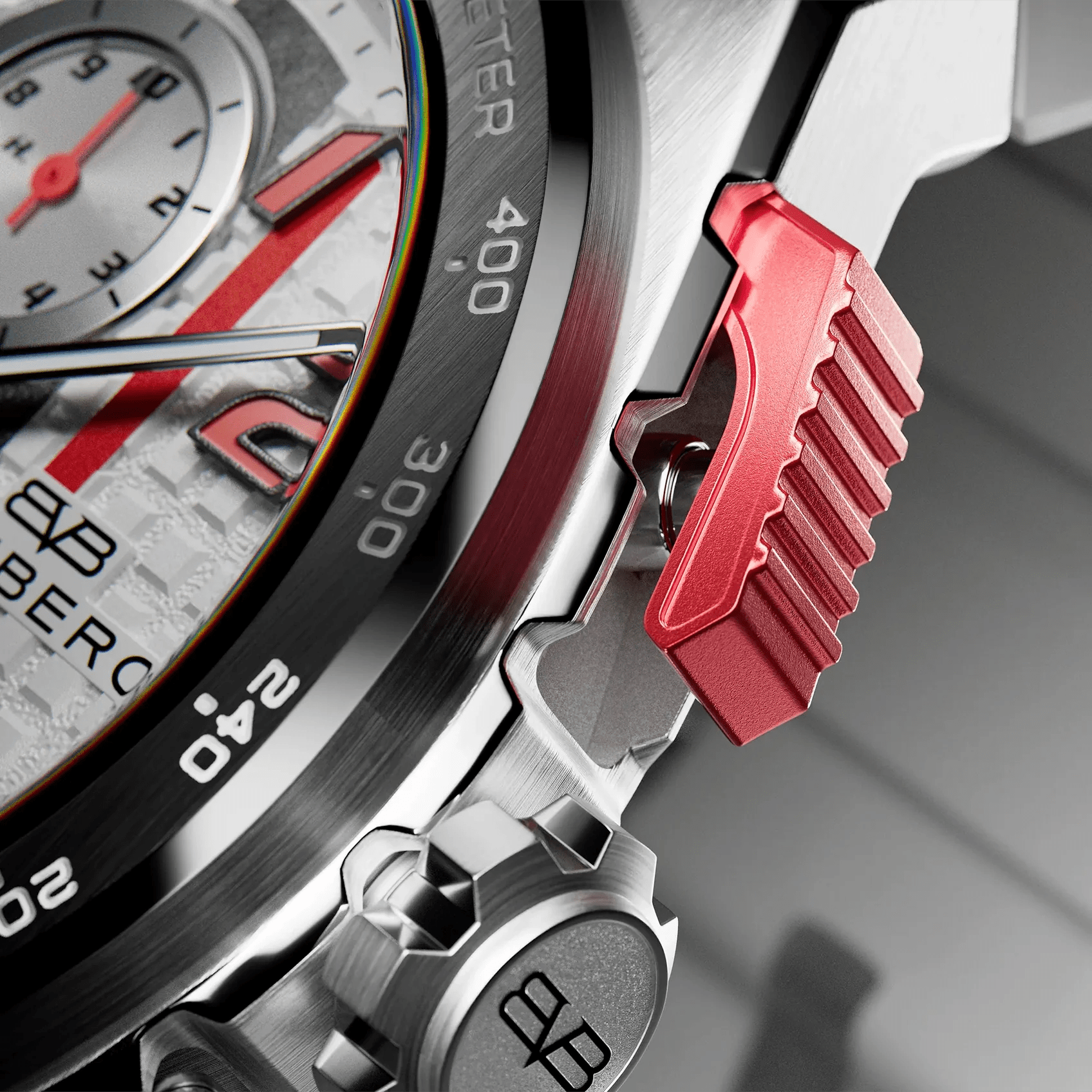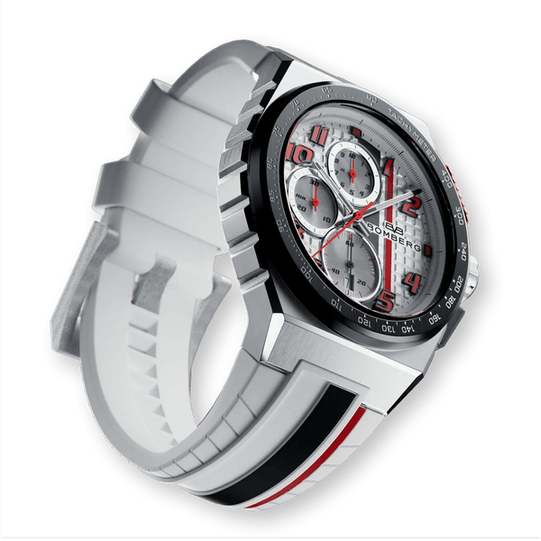 The Bomberg Apex ushers in a revolutionary era in racing-inspired design. Its 42mm case has been completely reimagined with sharp angles and a powerful Swiss chronograph movement, making it the ultimate choice for the track. With distinct features like the aluminum tachymeter bezel, textured dial, and optimized pushers, APEX flawlessly embodies the essence of speed. Additionally, each model pays homage to iconic motorsport liveries, perfectly blending racing heritage with Swiss precision.